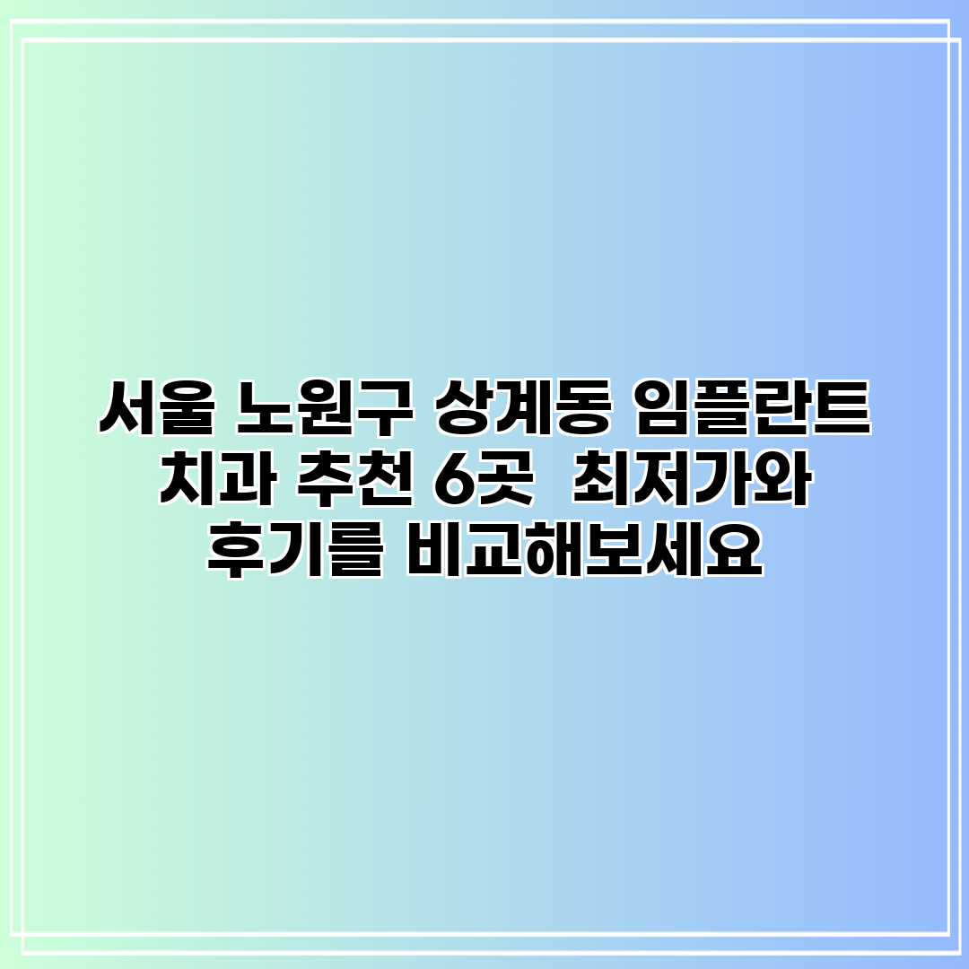여러분, 임플란트 시술을 고민하고 계신가요? 최근에 임플란트를 받았던 친구의 이야기를 들으면서 제 마음도 설렘과 불안으로 가득 차올랐던 기억이 납니다. 아무래도 치과 선택은 많은 분들이 가장 걱정하는 부분이죠. 그래서 제가 서울 노원구 상계동 임플란트 치과 추천 6곳에 대한 후기를 모아봤어요. 여러 가지 후기를 통해 보다 나은 결정을 할 수 있었던 경험을 공유해 볼게요.