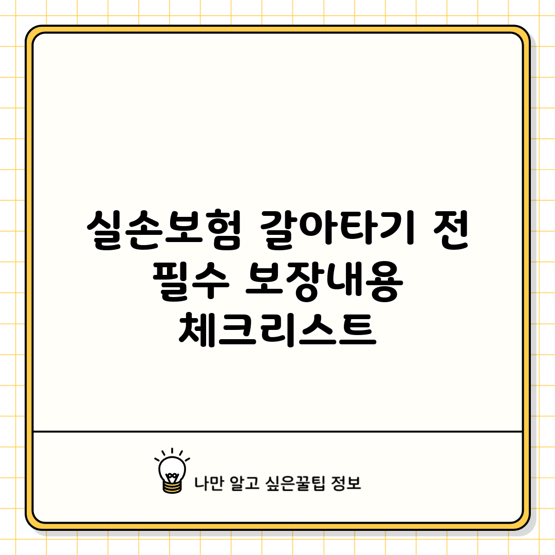 - 현재 가입 보험사의 보장내용과 비교하기: 기존 보험과 새로운 보험의 보장 내용을 꼼꼼히 비교해 보세요.