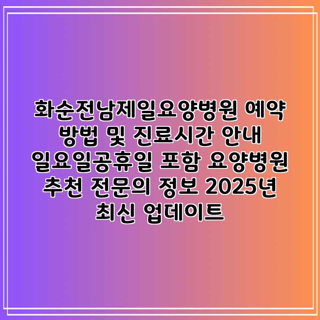 💡 화순전남제일요양병원의 진료시간 및 예약 방법을 자세히 알아보세요. 💡