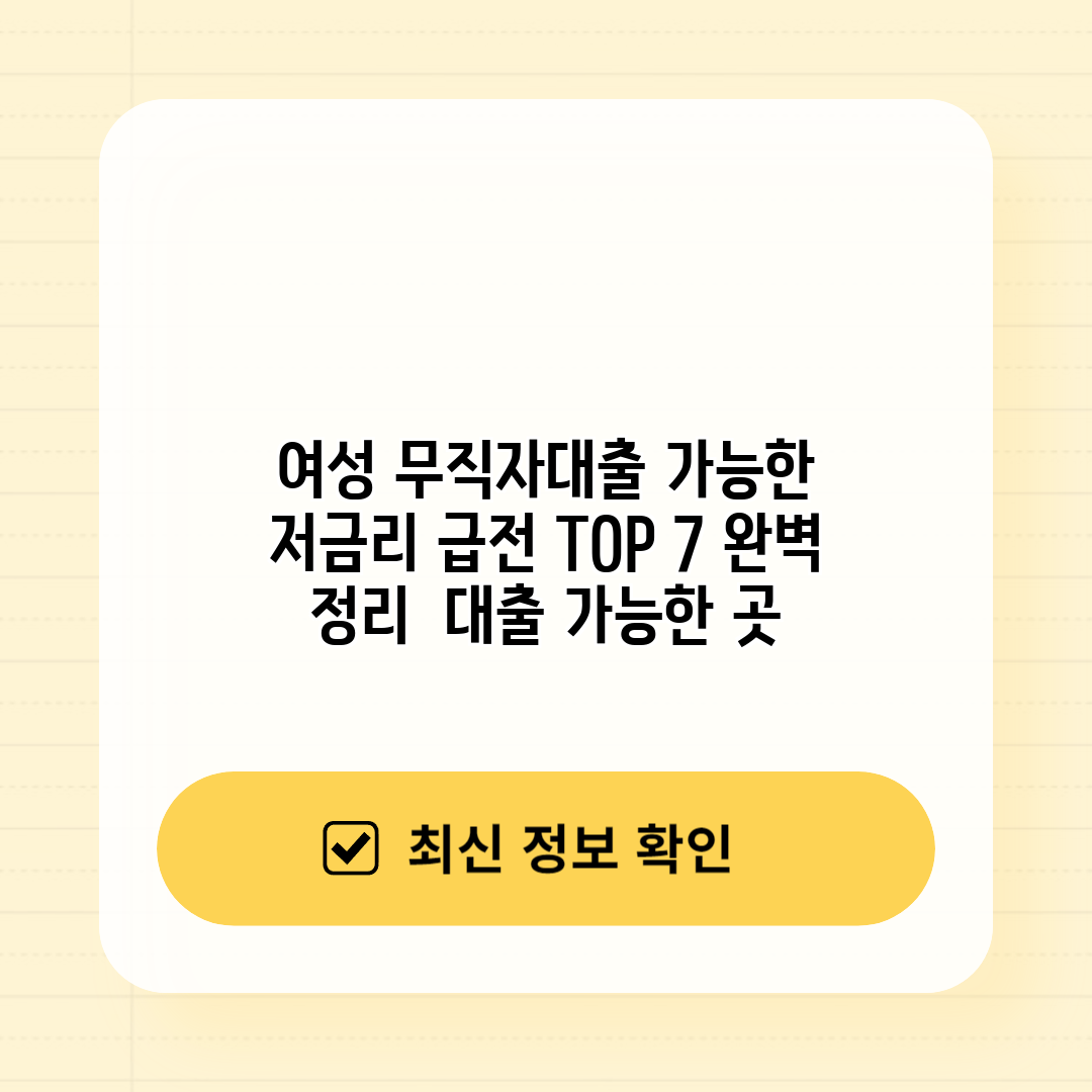 여성 무직자대출 가능한 저금리 급전 TOP 7 완벽 정리 대출 가능한 곳