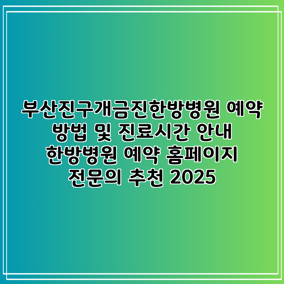 💡 부산진구개금진한방병원의 예약 방법과 진료시간을 알아보세요! 💡